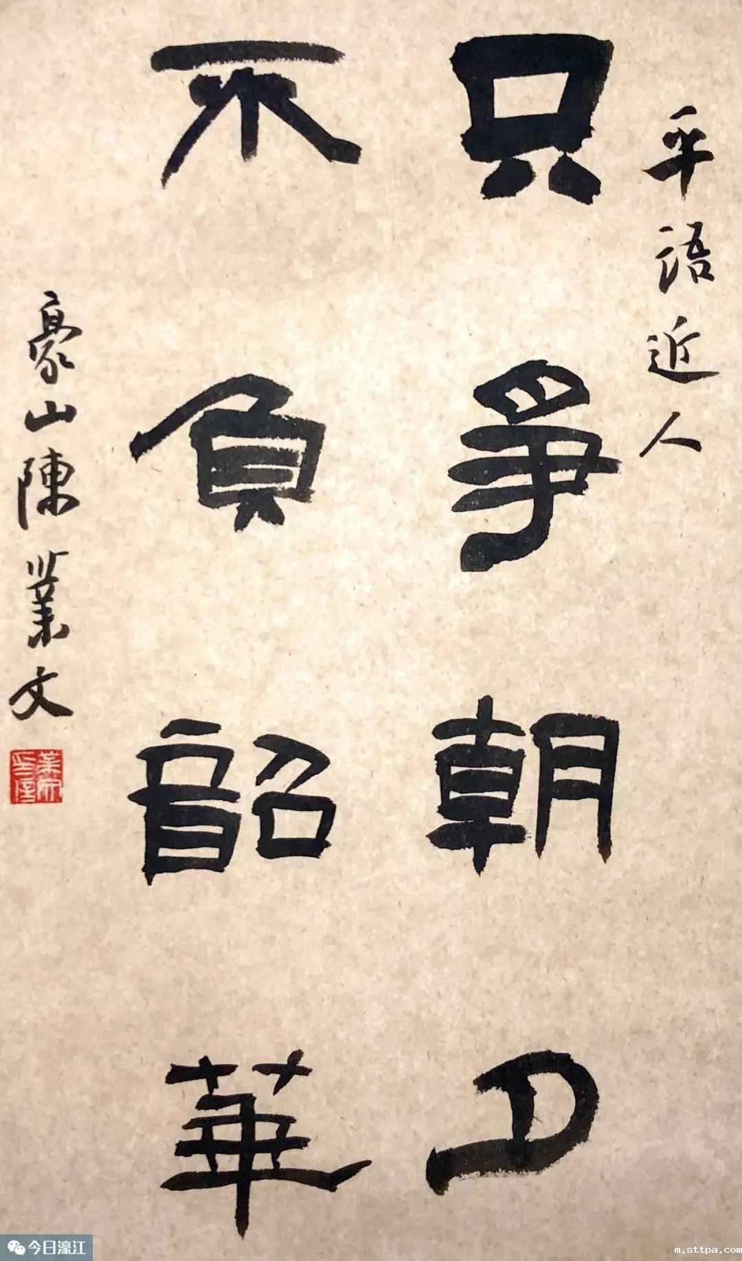 书法家简介 陈业文,濠江区首批优秀拔尖人才,3次荣获市文艺“精品奖”,系中国书法家协会书法考级考官、中国书法家协会会员、汕头市书法家协会副主席、濠江区书法协会主席。作品曾入展由中国书法家协会主办的全国“林散之奖”、青年展、册页展、大字展、新人展和荣宝斋全国展等,曾获广东省书法最高奖“南雅奖”银奖、“群艺奖”铜奖,并入展十余次。多次参与、策划全市性书法大展和比赛。